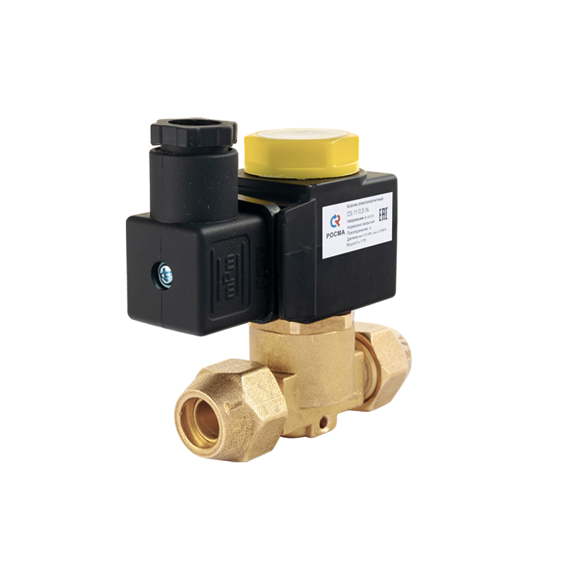 Клапан электромагнитный (соленоидный) двухходовой, прямого действия, нормально закрытый НЗ, номинальное напряжение АС 220В, присоединение под пайку (10мм), корпус – латунь, уплотнение – HNBR, Kv = 0,23 м3/час