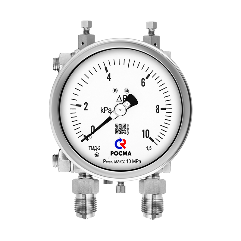 МАНОМЕТР дифференциальный, модификация 2, 100мм, Тип – ТМД-2-521Р, радиальное присоединение. 0-100kPa. Макс. статическое давление 10MPa. Резьба 2xG1/2. Класс точности 1,5. Заводской номер